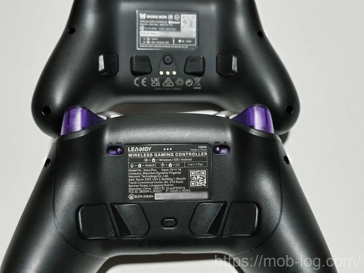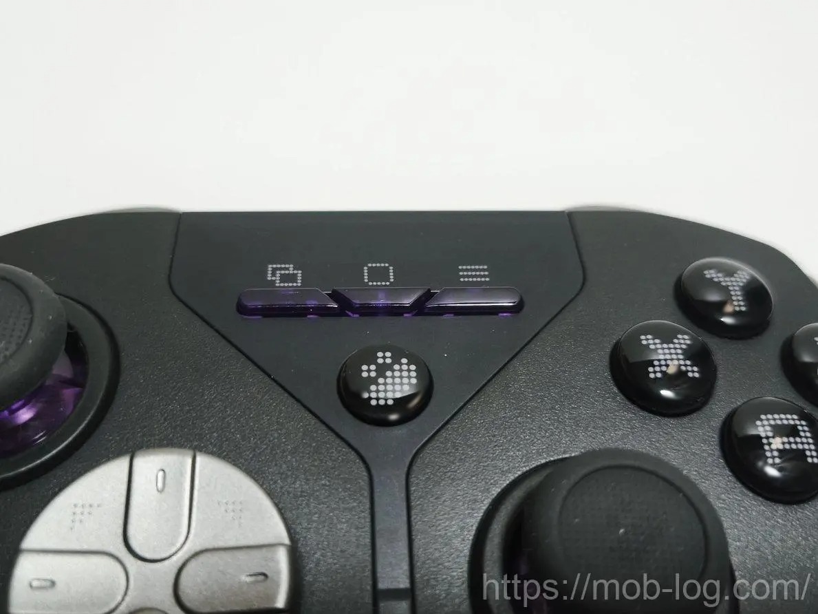 こちらもXboxコントローラー基準で、紫のクリアパーツ左がビューボタン、右がメニューボタンです。