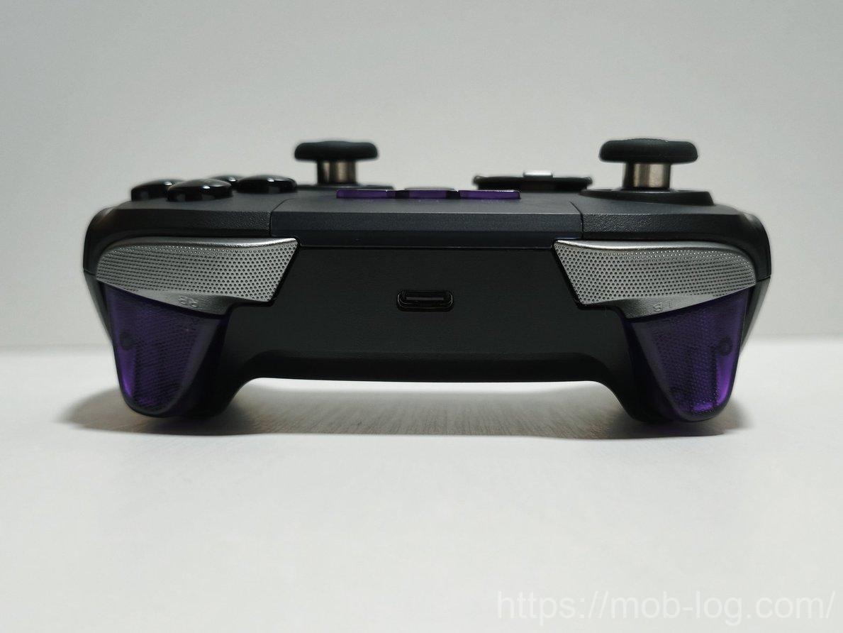 上部にはXboxと同じく左右のバンパー(RB・LB)、左右のトリガー(RT・LT)、そして充電用のType-Cポートがあります。