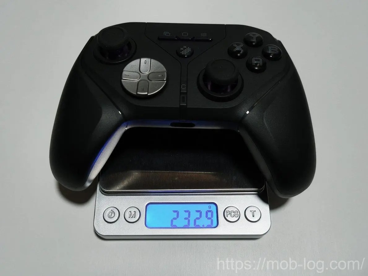 Xeno Plusは実重量が約232gと、ワイヤレスコントローラーとしてはかなり軽量な部類となっています。