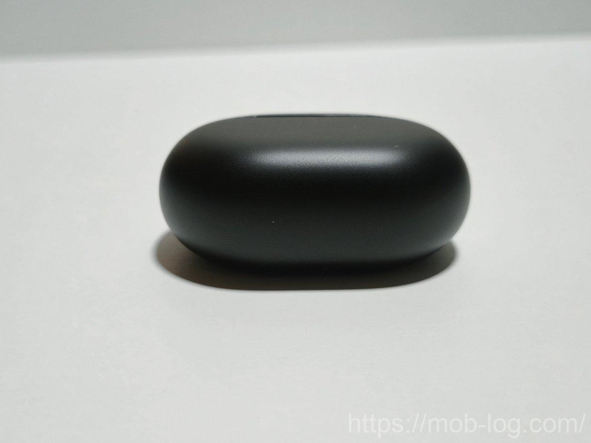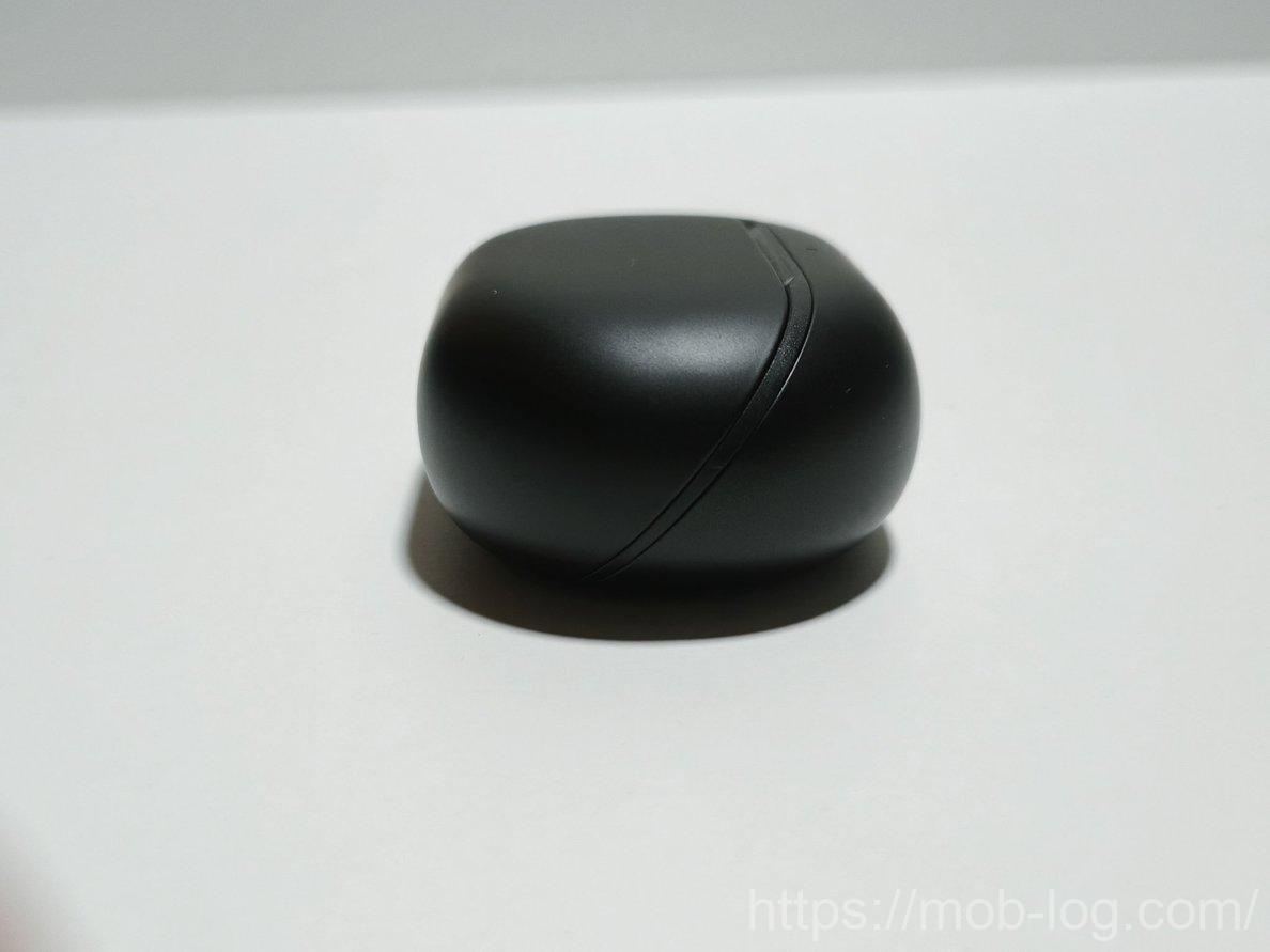 真っ黒なケースで丸い形状のシンプルなデザイン。中央下部にLEDランプがあります。
