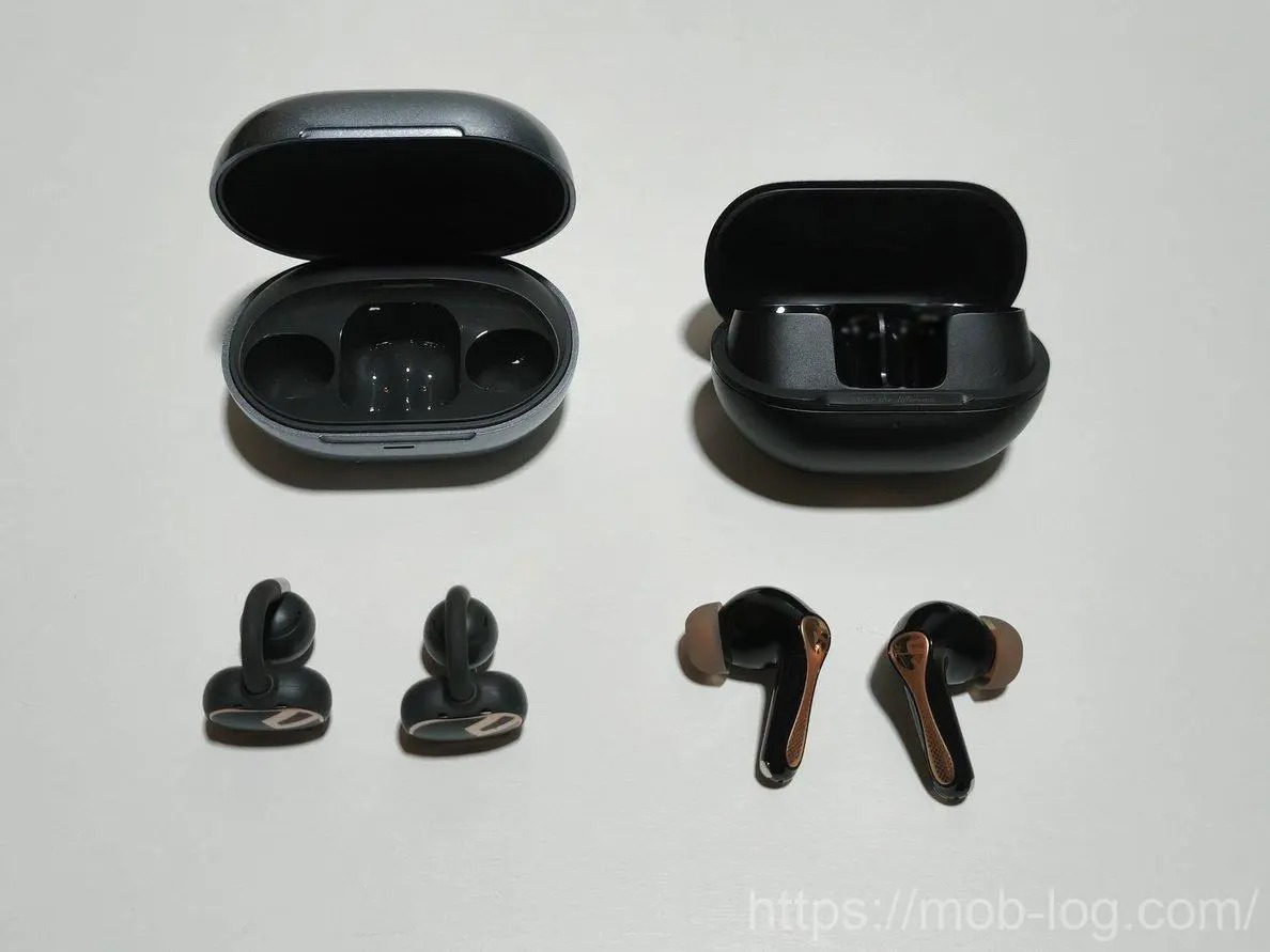 Clip1はイヤーカフ型なので単純な比較はできませんが、それでもAir 5 Pro+のケースはコンパクトな印象があります。