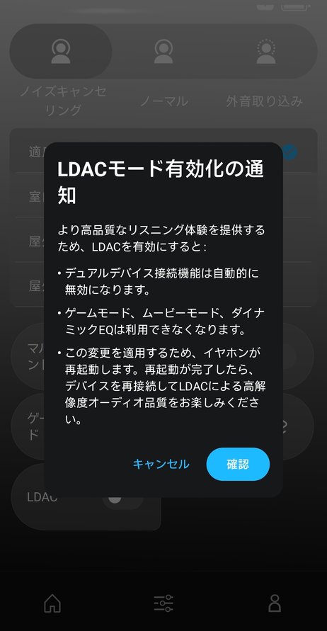 また、LDAC適用中は各種EQや後述するマルチポイント接続が使えなくなることも気になるポイント。なのでCDに近い音質で聴くか、カスタマイズ製や機能性を重視するかで選ぶのが良いでしょう。