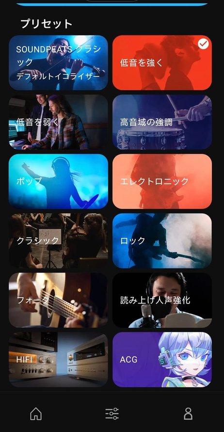 このアプリでモードの切り替えやショートカットの設定、イコライザーの設定などを自由に行うことができます。